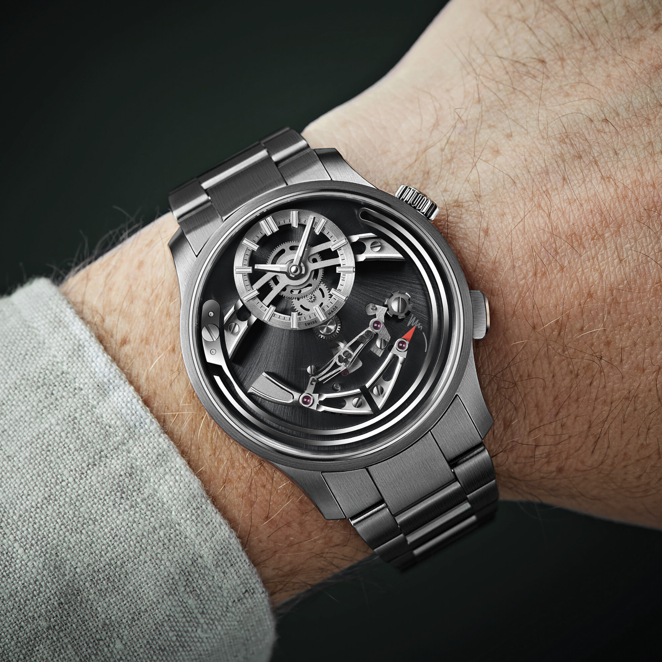 At 41 mm in titanium, the Bel Canto wears comfortably. The case finishing is sharp and modern, with a mix of brushed and polished surfaces that catch the light nicely. Titanium keeps the weight down, which suits a watch with this much visual presence.