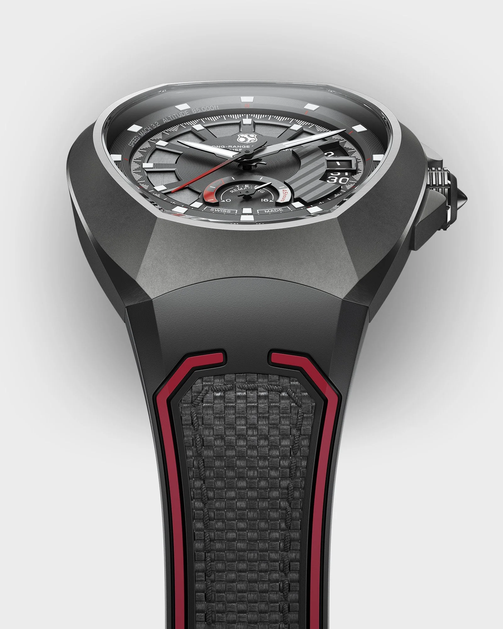 The tonneau case also makes sense here. It feels more aligned with the aerodynamic, almost organic shape of the Blackbird than a traditional round case would. This is not subtle. But it is coherent.