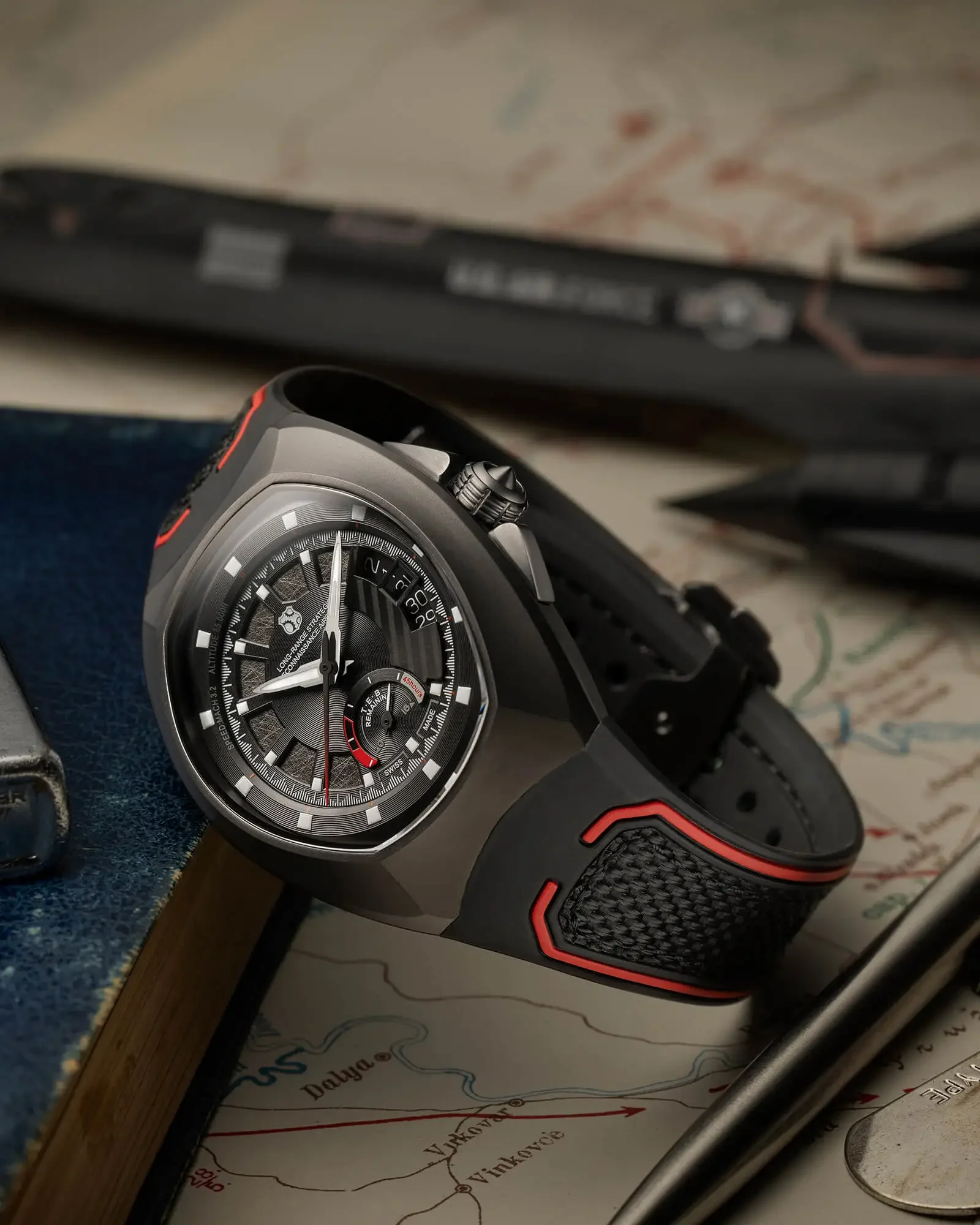 The layered dial, cut outs, and industrial textures are clearly intended to echo the SR-71’s engineering rather than simply reference it. There is a sense of purpose to the design, even if it leans heavily into that “instrument panel” aesthetic that brands love whenever aviation is involved.