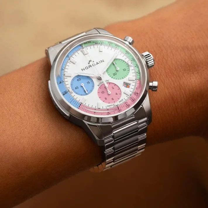 The effect? A dial that feels both modern and relaxed, ideal for warm-weather styling. These watches look great peeking out from a white linen shirt or paired with a simple tee and chinos. Brands like Norqain and Mr Jones are leading the charge with pastel-toned designs that still feel grown-up.