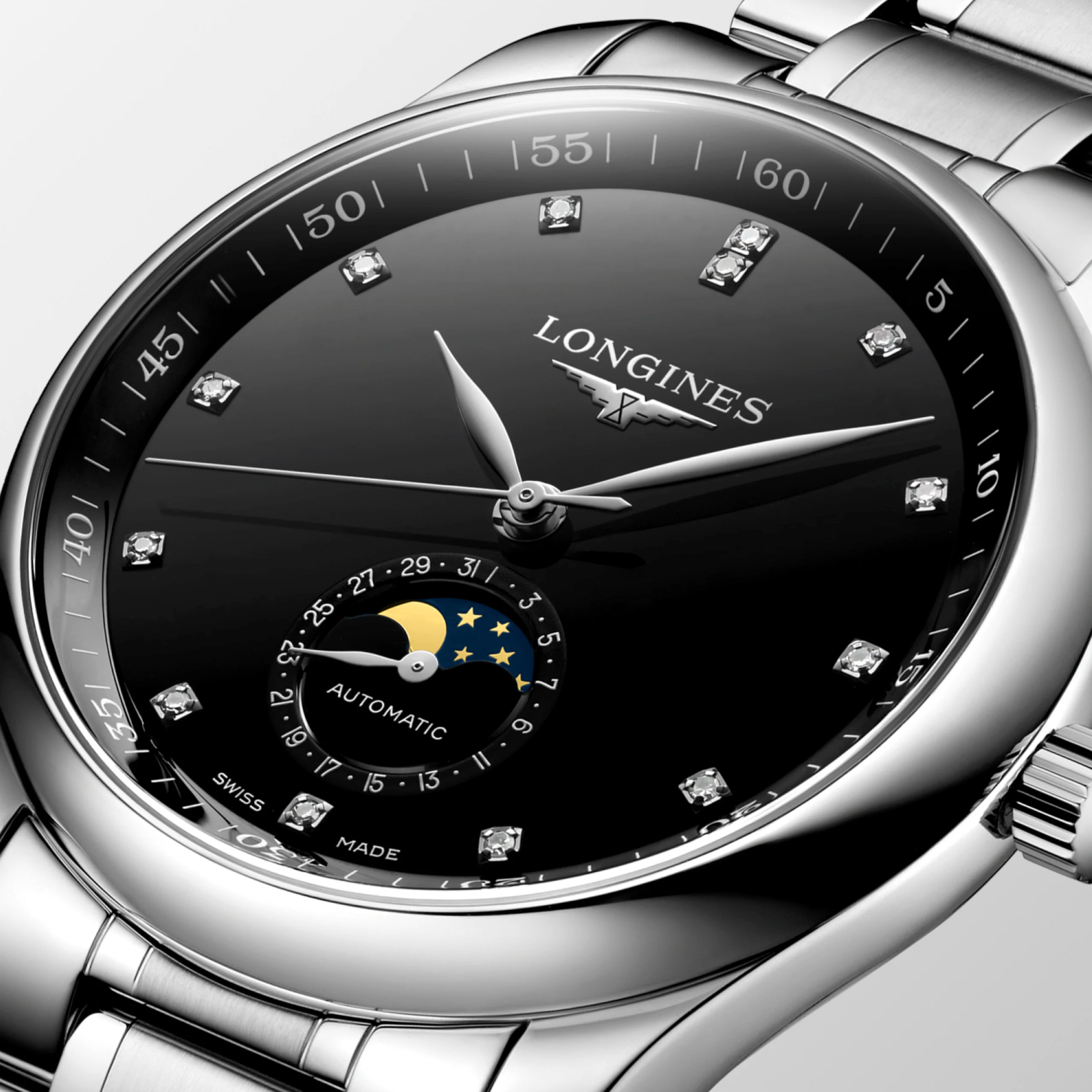 The Master Collection represents Longines at its most traditional and sophisticated. This 40 mm stainless-steel Moonphase model adds a poetic touch with its lunar complication and date sub-dial at six o’clock.